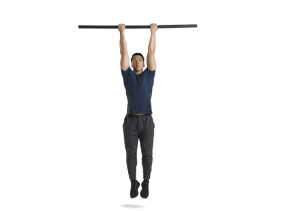 - Bắt đầu bài tập với tư thế treo người trên thanh xà đơn bằng cách nắm 2 tay vào xà đơn và để 2 lòng bàn tay hướng về phía thân người. Bạn có thể đặt khoảng cách 2 tay rộng bằng vai hoặc rộng hơn vai. Kinh nghiệm dành cho người mới tập đó là nên để hai tay rộng hơn vai nhằm dễ lên xà hơn.