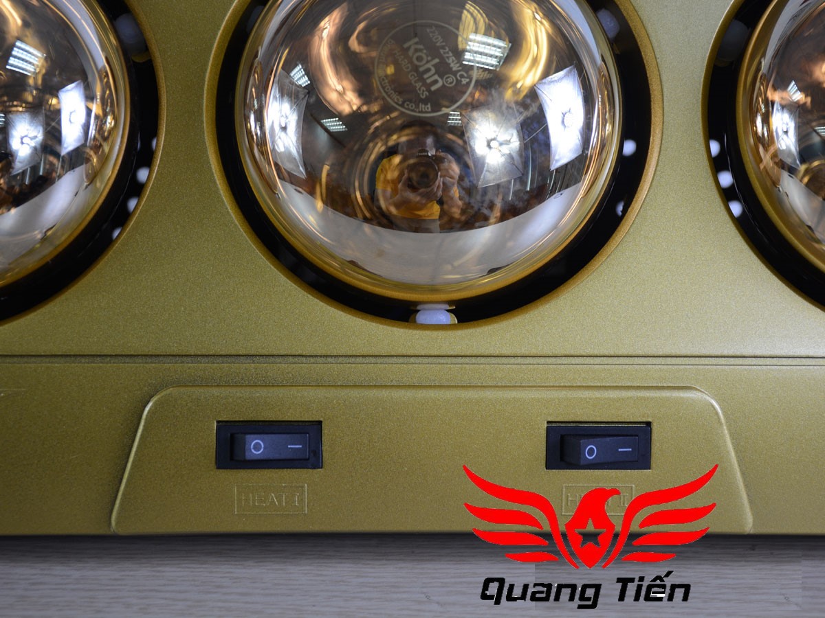 Đèn sưởi nhà tắm Kohn KN03G 825W được thiết kế theo phong cách châu Âu, vừa để chiếu sáng, vừa để sưởi ấm. Đèn sưởi nhà tắm KN03G 825W sử dụng 3 bóng đèn chiếu sáng vàng được sản xuất theo tiêu chuẩn chất lượng của các chuyên gia hàng đầu tại Braun - Thương hiệu đèn sưởi số 1 của CHLB Đức.