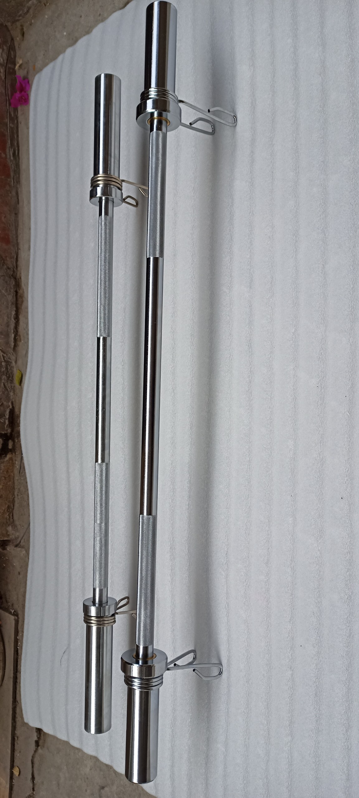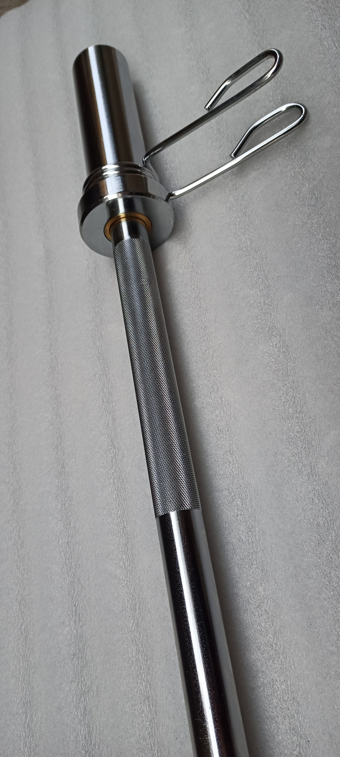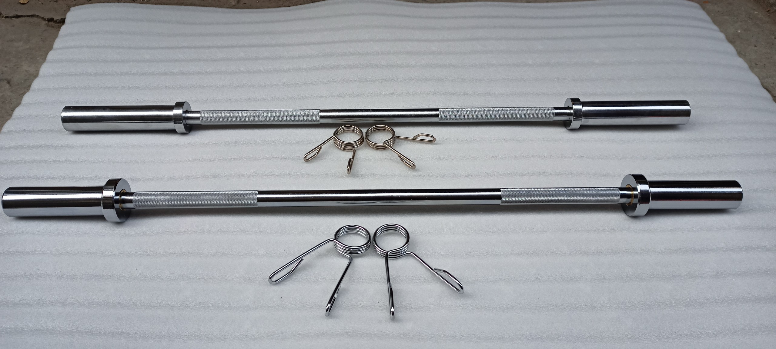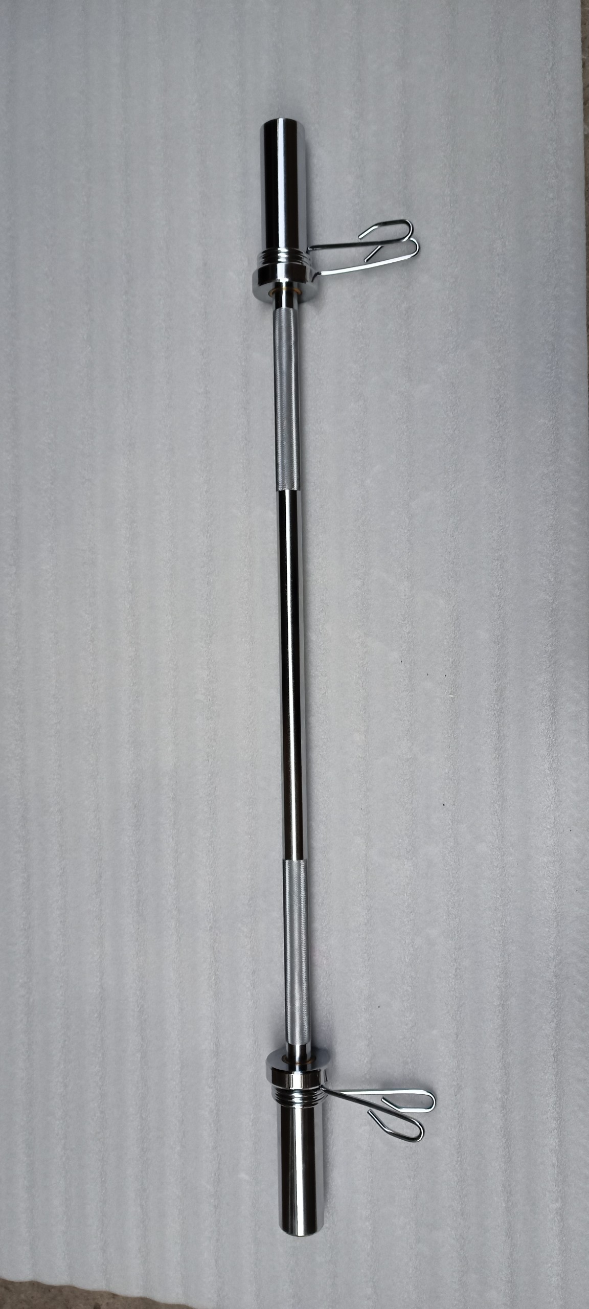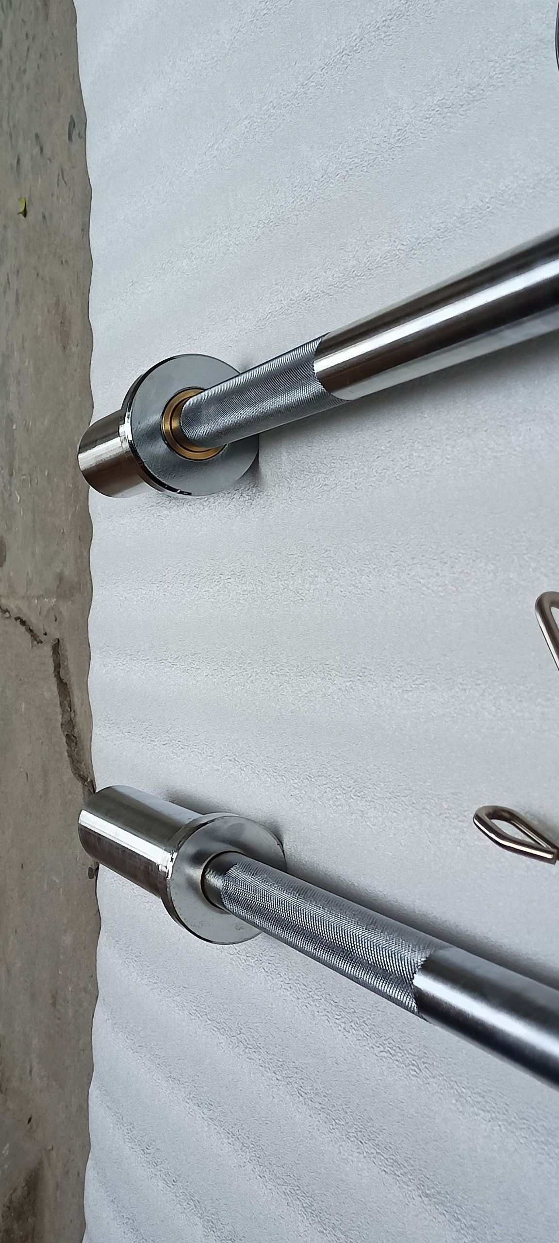 - Thiết kế 2 đầu phi 50 bằng inox có kẹp khóa tạ, phần tay cầm thép đặc mạ niken phi 28.