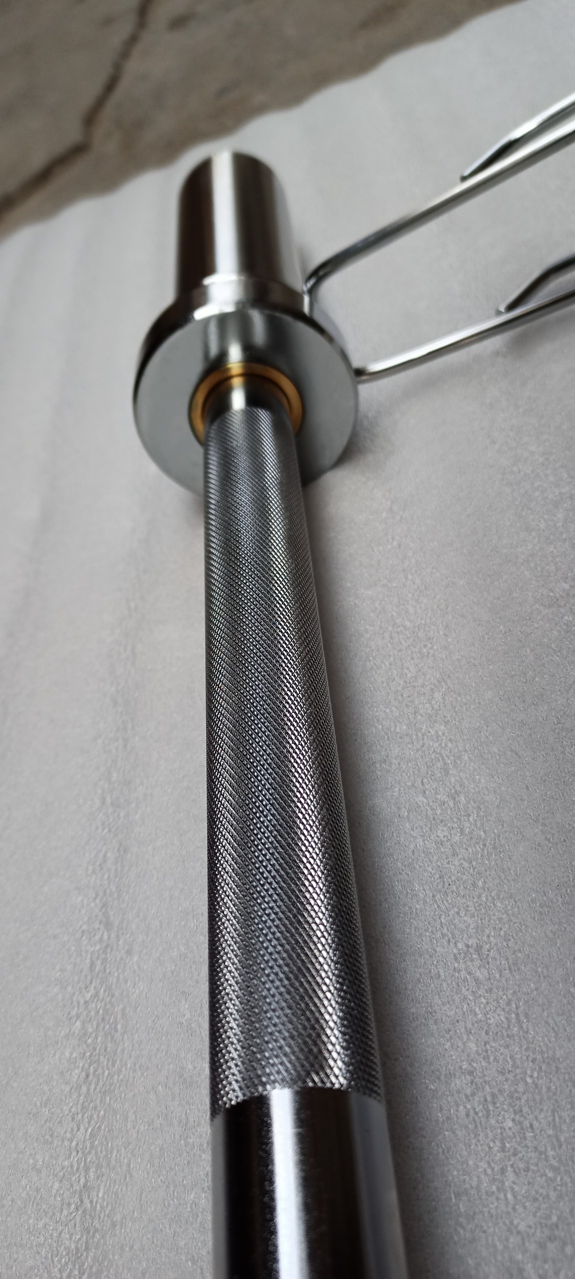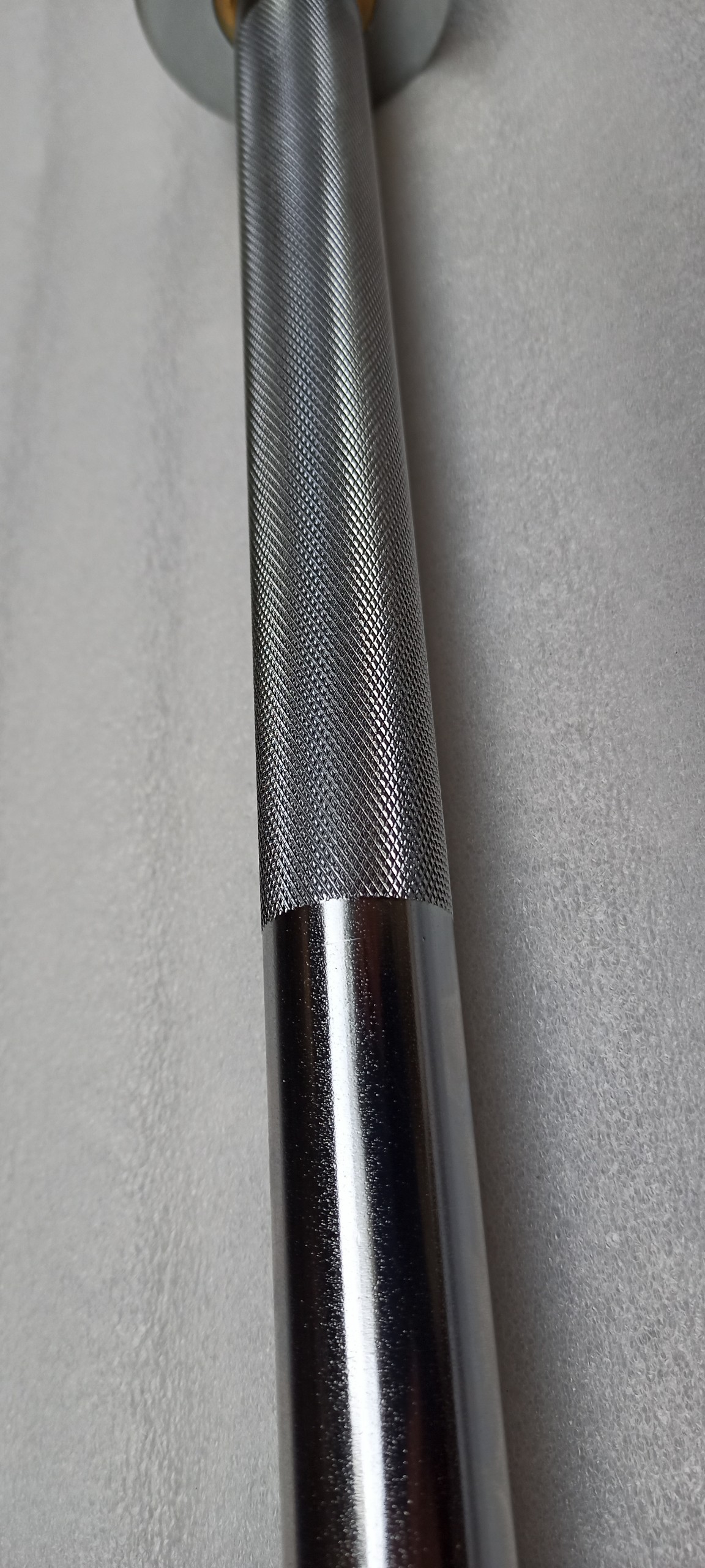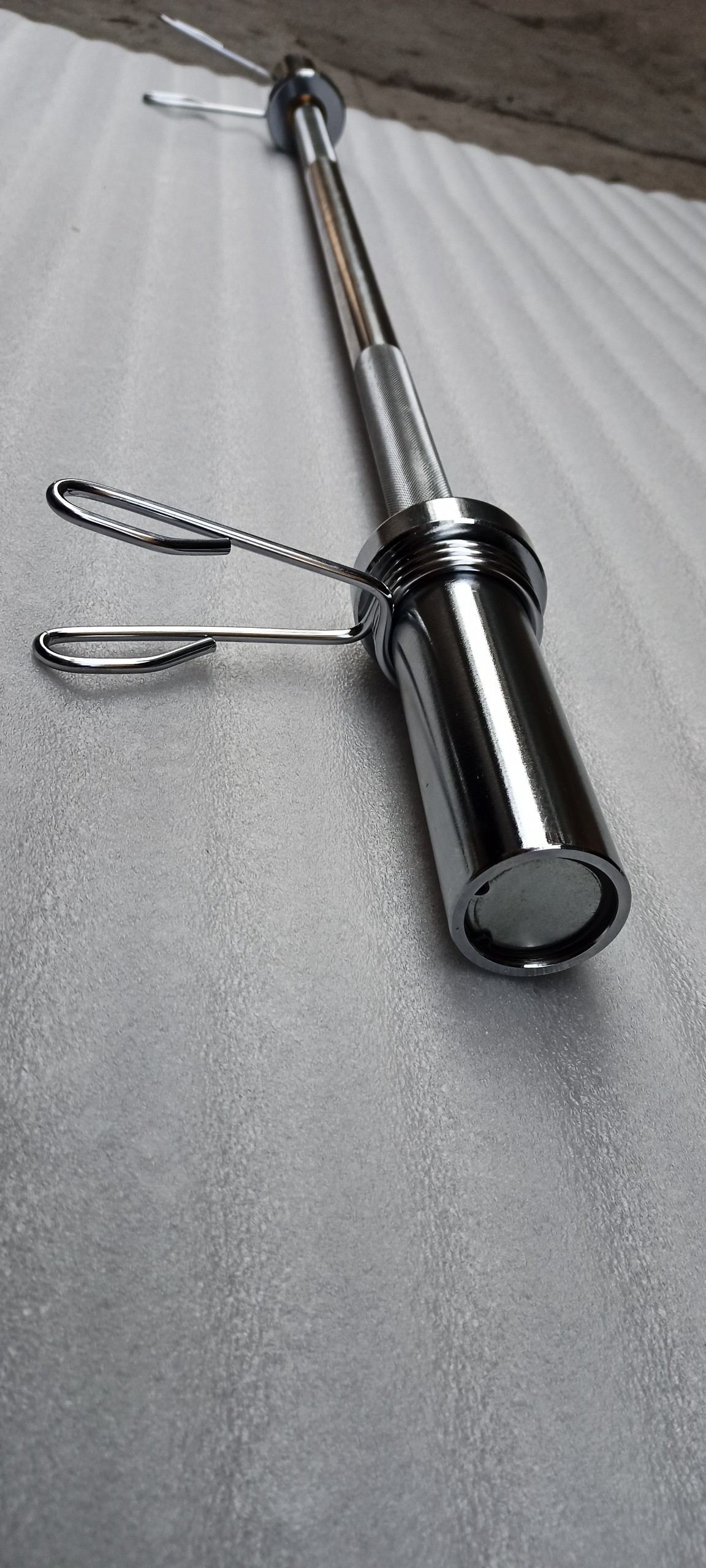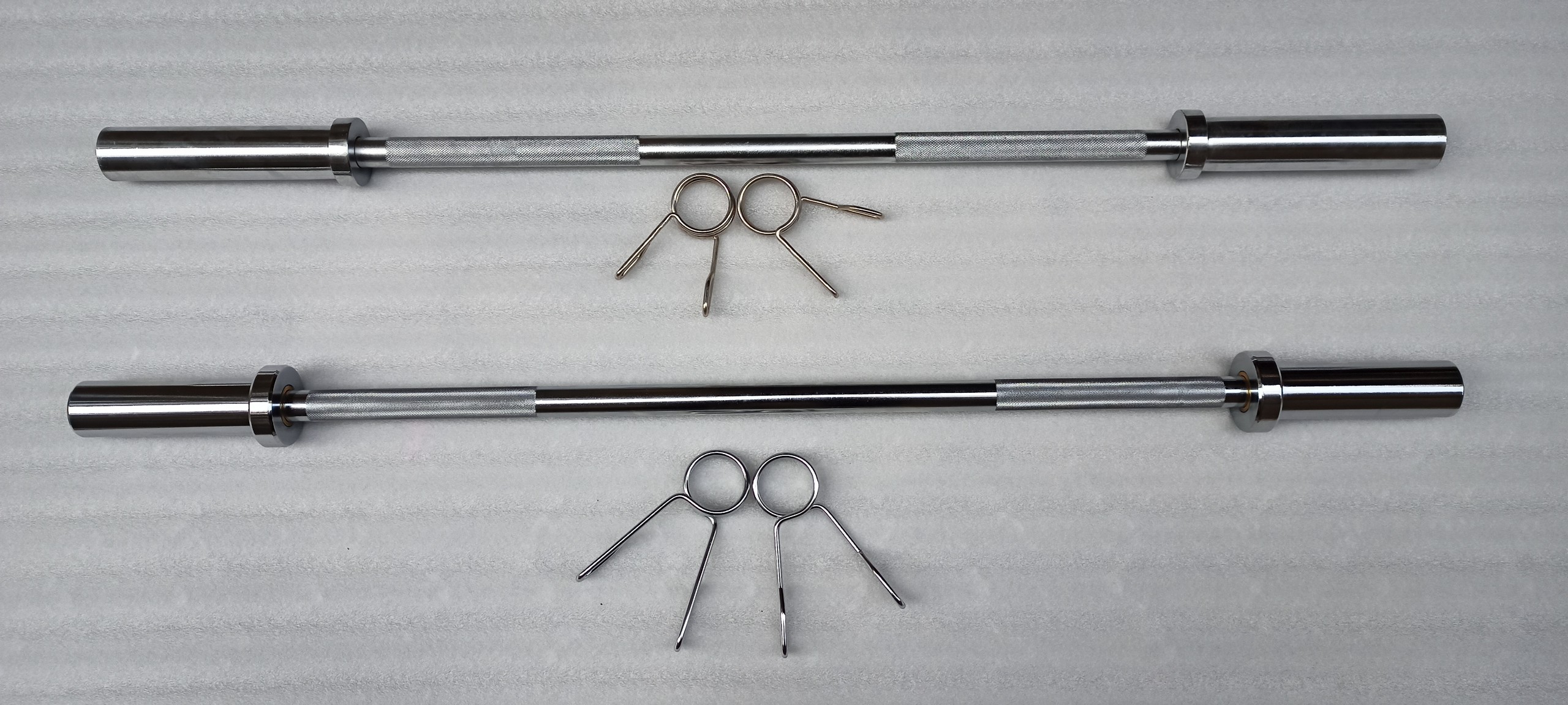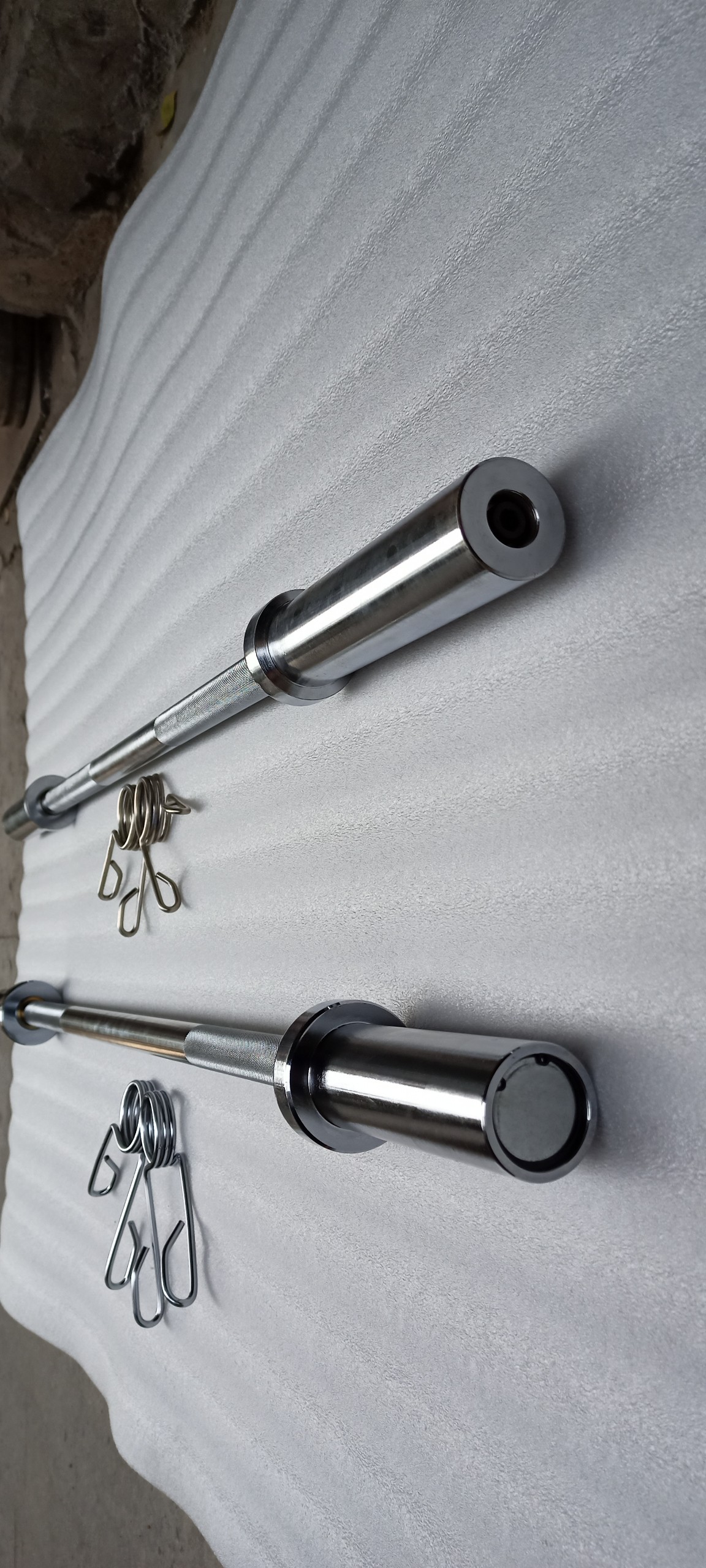 - Thiết kế 2 đầu phi 50 bằng inox có kẹp khóa tạ, phần tay cầm thép đặc mạ niken phi 28.