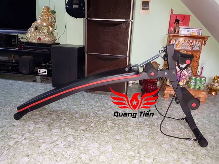 - Ngoài chức năng gập bụng thì ghế tập bụng còn được tích hợp thêm 2 dây kéo đàn hồi và bộ phận tay kéo lò xo, giúp tăng cường tập luyện cho các nhóm cơ hiệu quả hơn.