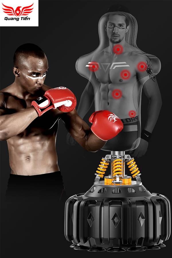 - Hình nộm lò xo tập võ có dạng hình người nên giúp người tập thực hiện động tác như tập luyện với người thật. Sản phẩm chuyên được sử dụng tập luyện cho các phòng tập võ, CLB võ thuật, phòng Gym chuyên nghiệp hay sử dụng để tập võ tại nhà.