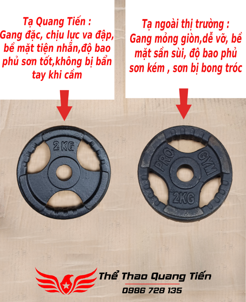 Hình ảnh thực tế sản phẩm tạ gang , miếng tạ gang tiêu chuẩn Quang Tiến QT08 .