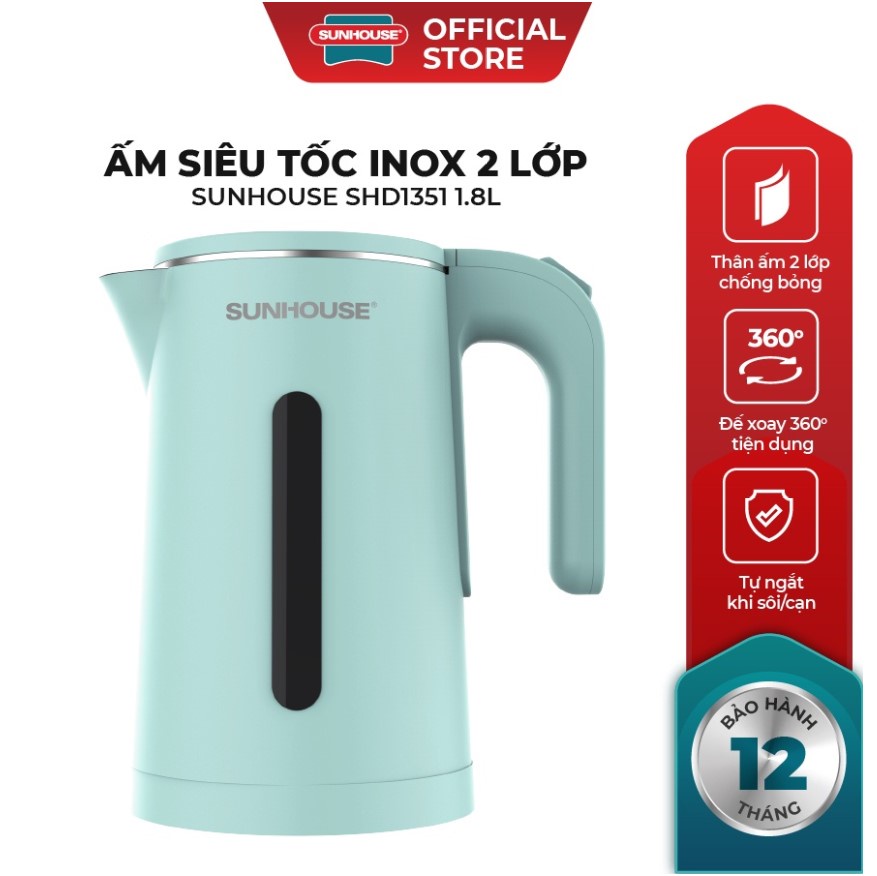 Ấm Siêu Tốc 2 Lớp Sunhouse SHD1351,Dung Tích 1.8 Lít, Bền Đẹp An Toàn ❤️