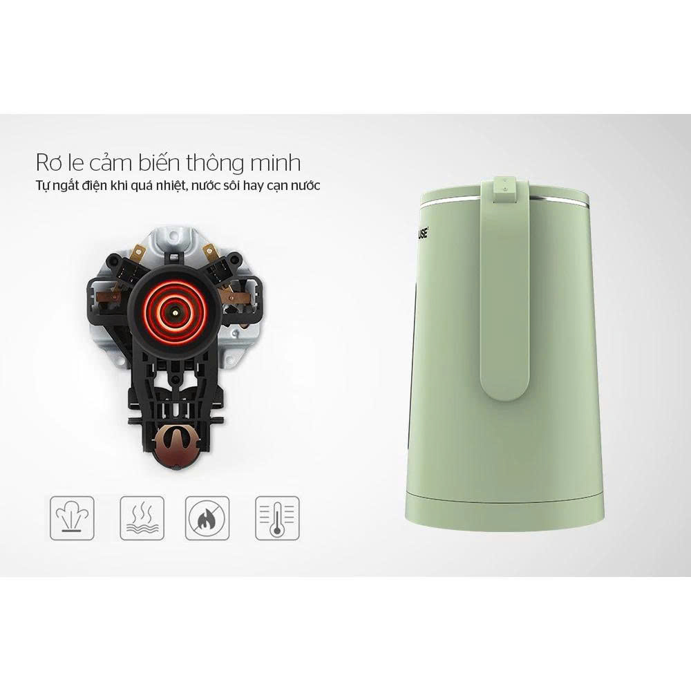 Ấm có chế độ ngắt tự động khi nước sôi hoặc cạn nước, đảm bảo an toàn tối đa cho người sử dụng (quên/bận rộn công việc khác). Chức năng này còn giúp làm tăng tuổi thọ sản phẩm và phòng chống cháy nổ.