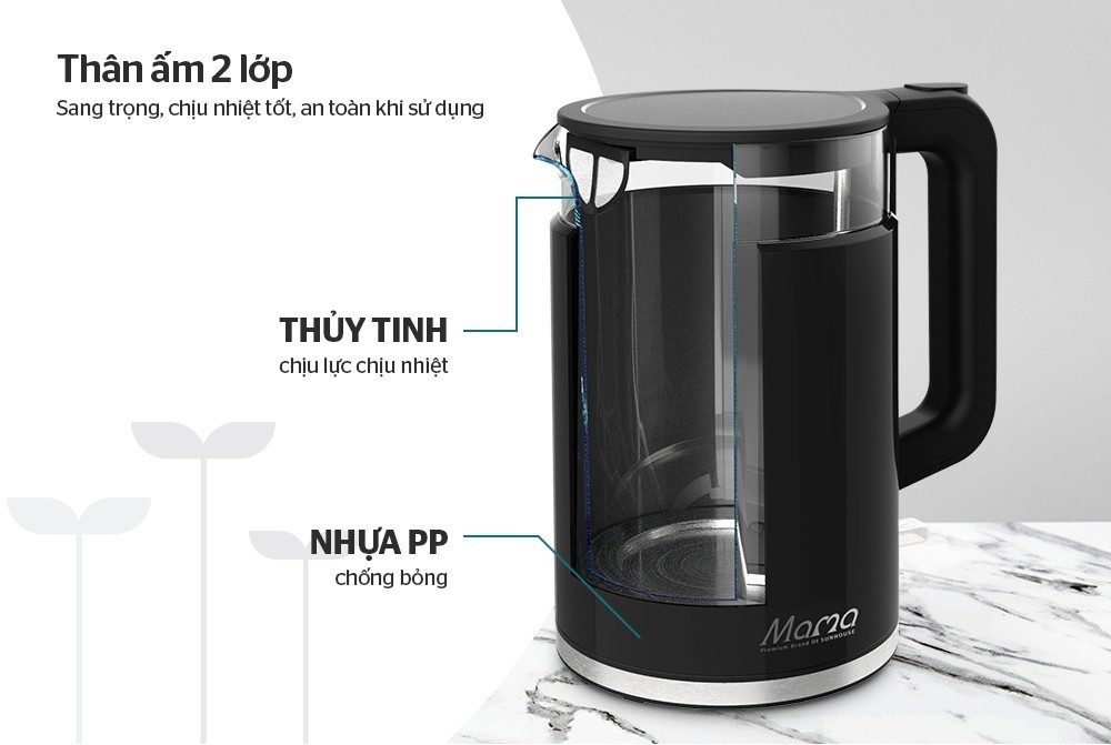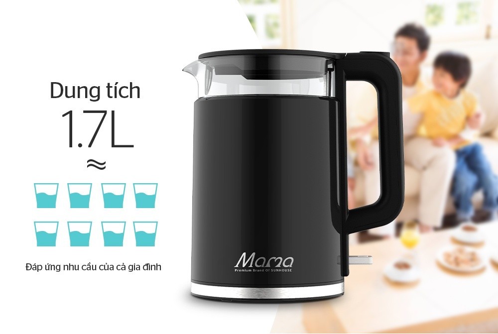 Nổi bật với thiết kế hiện đại, sang trọng với tone màu đen chủ đạo, ấm siêu tốc thủy tinh 1.7L SUNHOUSE MAMA SHD1330 là sự lựa chọn phù hợp cho những căn bếp hiện đại. Ấm có dung tích lớn 1.7 lít cùng công suất hoạt động cao (1850W) giúp việc đun nước nhanh chóng hơn, tiết kiệm thời gian và điện năng tối đa. Không chỉ là một thiết bị nhà bếp, ấm siêu tốc SUNHOUSE MAMA SHD1330 còn là một điểm nhấn cho căn bếp gia đình bạn thêm hiện đại, sang trọng.