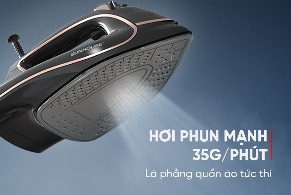 Được trang bị công suất mạnh mẽ lên đến 2000W, Bàn là hơi Sunhouse SHD2070 nhanh chóng đạt nhiệt độ lý tưởng chỉ sau 20-30 giây. Điều này giúp bạn tiết kiệm tối đa thời gian chuẩn bị và có thể là quần áo ngay lập tức. Đây là lựa chọn lý tưởng cho những ai bận rộn, cần ủi đồ nhanh nhưng vẫn đảm bảo hiệu quả và chất lượng.