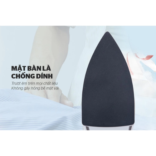 Bề mặt bàn là được phủ lớp chống dính siêu bền, giúp bàn là trượt êm trên mọi chất liệu, tránh làm cháy xém quần áo, hạn chế bóng vải và dễ dàng vệ sinh khi cần thiết.