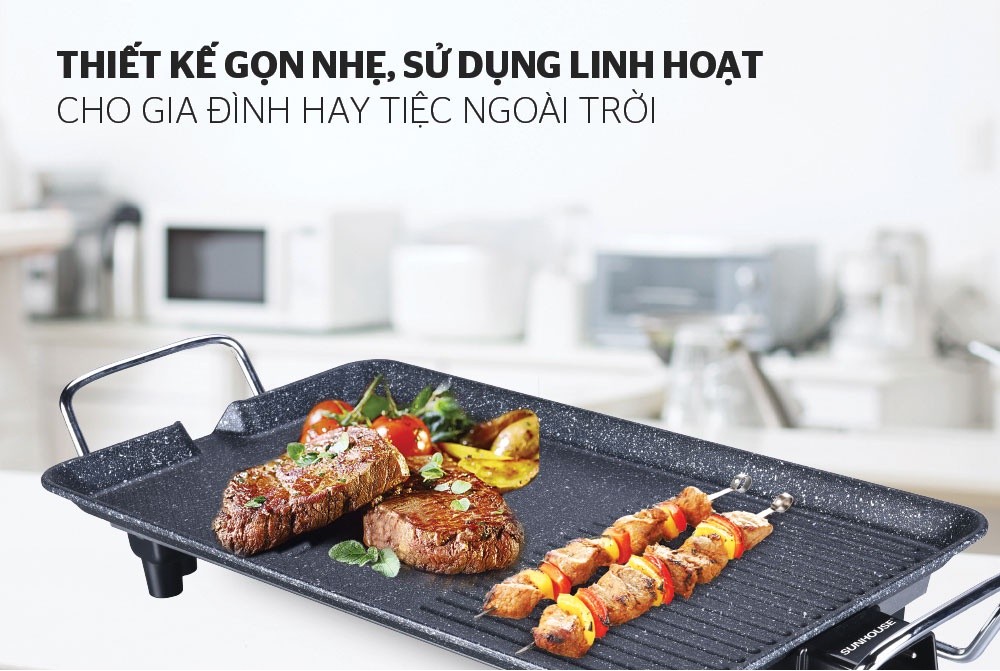 Bếp nướng điện SUNHOUSE 1500W SHD4607 được thiết kế với kiểu dáng gọn gàng, chỉ 1.8kg, dễ dàng di chuyển và cất trữ.