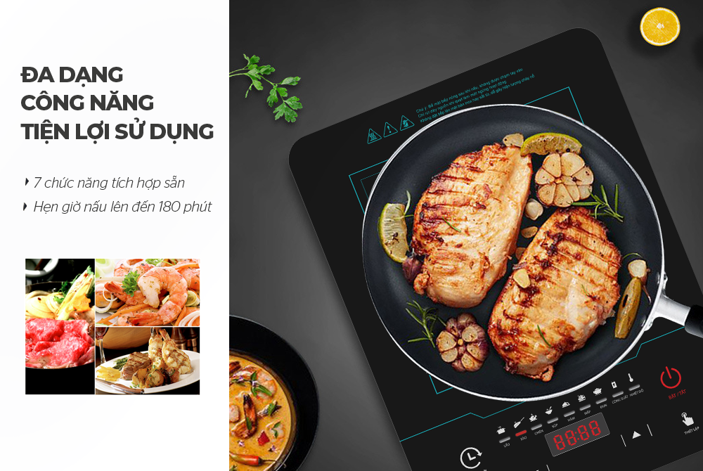 Chế độ: Lẩu – Xào – Chiên – Súp – Hâm nóng – Hấp – Đun nước
