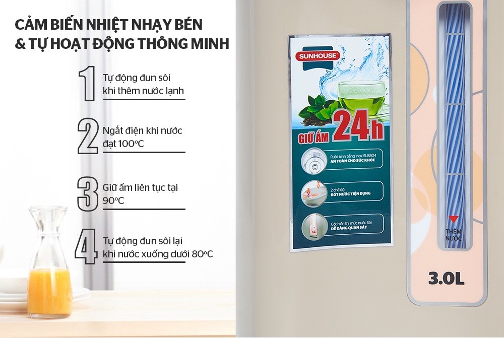 So với các các phương pháp đun sôi truyền thống, sử dụng bình thủy điện rõ ràng đem lại sự tiện lợi hơn rất nhiều. Với các chức năng như đun sôi nhanh, tái đun sôi hay giữ ấm thông minh suốt 24 giờ, bình thủy điện 3.0 L SUNHOUSE SH1530 giúp bạn luôn có sẵn nước nóng để pha sữa, trà, cà phê, ngũ cốc hay ăn mì…