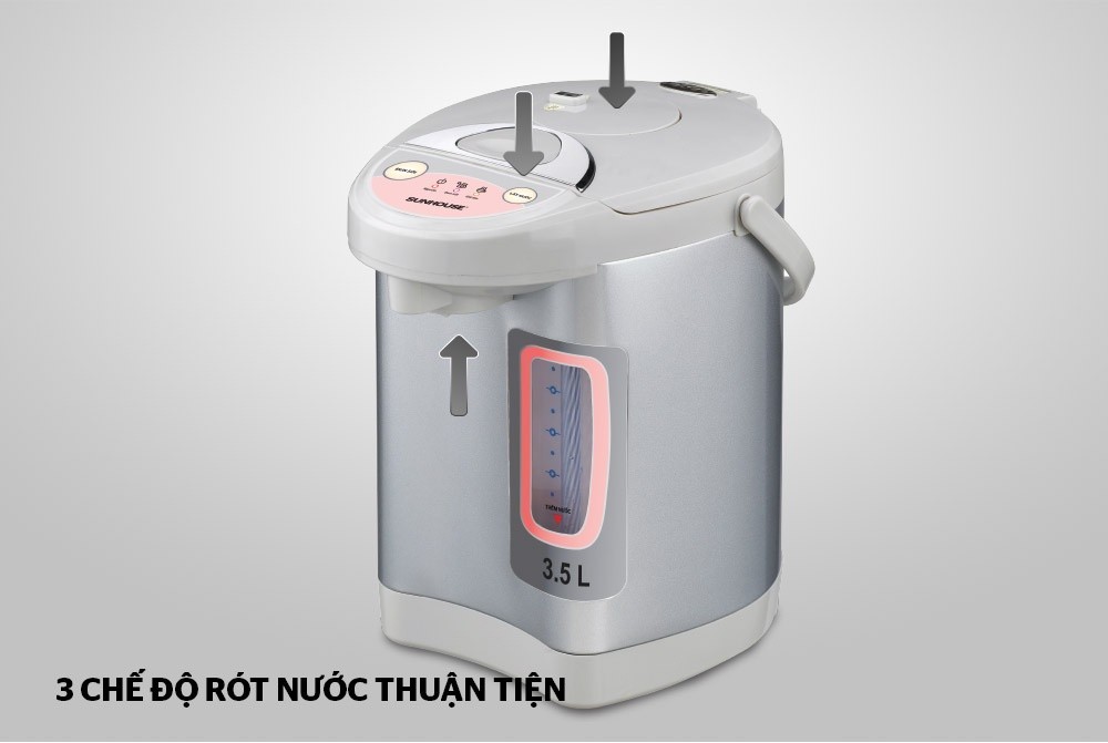 Bình thủy điện 3.5 L SUNHOUSE SHD1535 hoạt động với công suất mạnh mẽ 735W, cho phép đun sôi tối đa 3.5L nước cực nhanh với các thao tác cực đơn giản.