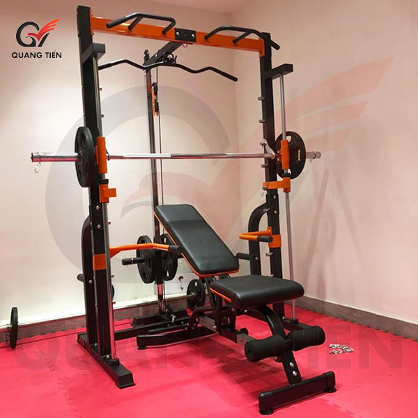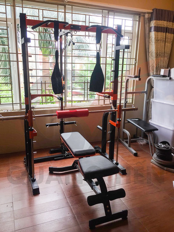 – Ngoài ra, nó còn được tích hợp thêm thanh tập xà đơn, bộ phận tập xà kép và các phụ kiện đi kèm như tay kéo xô ngắn, thanh kéo xô dài, hay mút xốp lót gánh tạ.