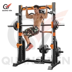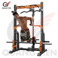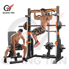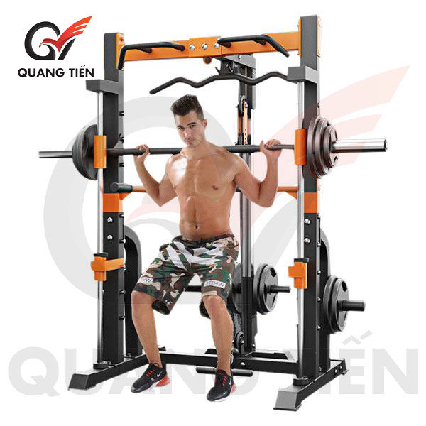 – Squat và đẩy tạ là chức năng tập chính khi thực hiện với khung gánh tạ. Khung có sẵn đòn tạ đi kèm và có hệ thống móc chốt đòn tạ ở hai bên khung đảm bảo an toàn tuyệt đối cho người tập. Đòn tạ đi kèm sử dụng bánh tạ có đường kính lỗ phi 52.