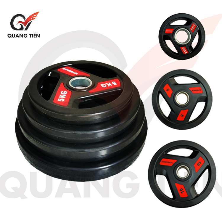 Bánh tạ đĩa chất liệu gang bọc cao su phi 50mm Kingbox là sản phẩm chuyên dụng đi kèm theo các ghế tập tạ, thực hiện các bài tập cơ bắp, dùng cho phòng tập chuyên nghiệp.