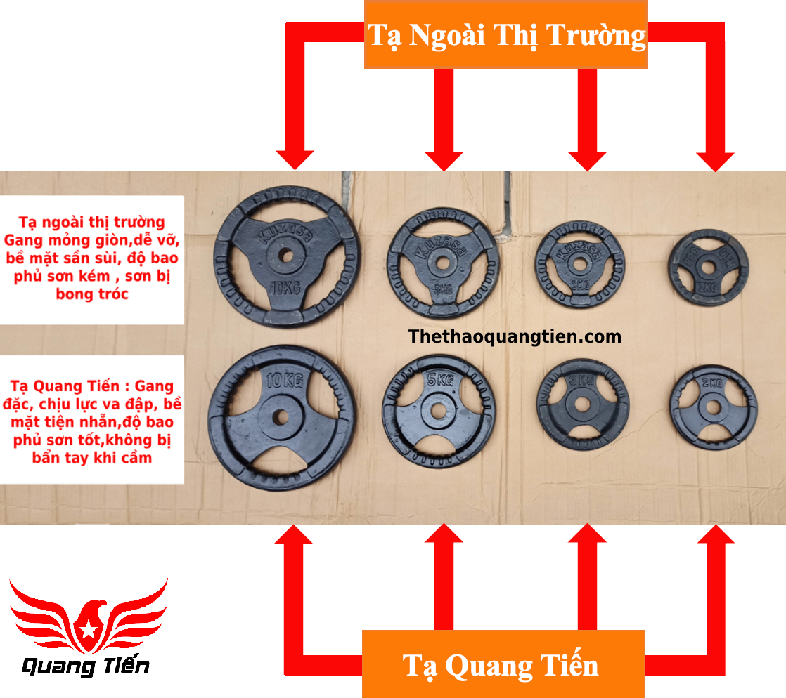 Hình ảnh thực tế sản phẩm tạ gang , miếng tạ gang tiêu chuẩn Quang Tiến QT08 .