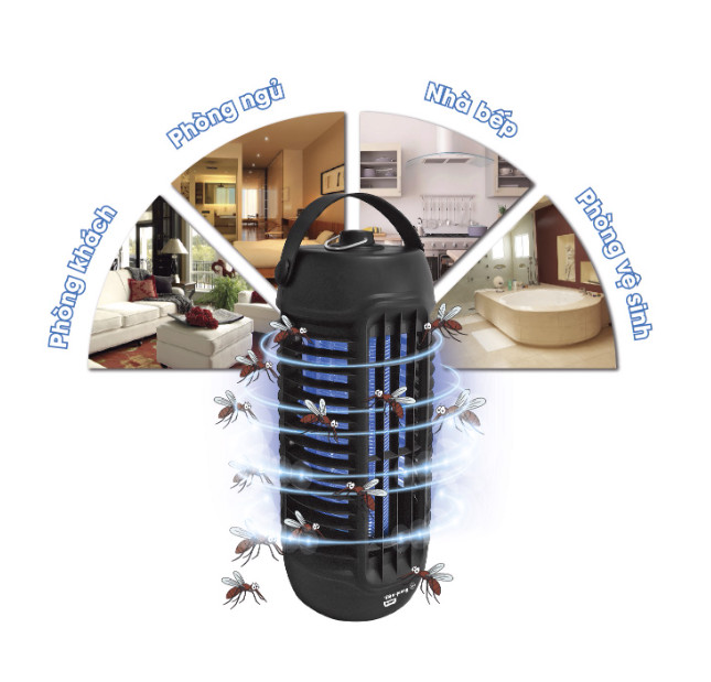 - Thân đèn được thiết kế với khe hở lưới xung quanh nên diệt muỗi tất cả mọi hướng theo 360 độ.