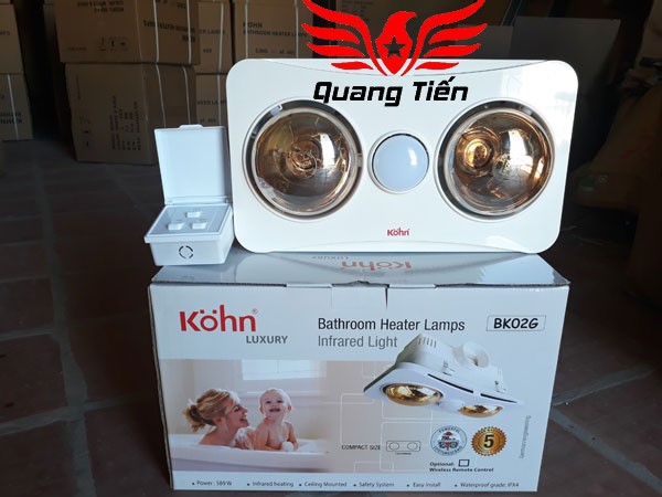 - Lắp đặt đèn sưởi Kohn KU02G sẽ mang đến cho người dùng những phút giây ấm áp trong nhà tắm bất chấp thời tiết giá lạnh, nó giúp bạn không những ấm mà còn có lợi ích về mặt sức khỏe, giảm ho hắng, cảm lạnh và tăng cường trao đổi chất, lưu thông tuần hoàn máu hơn, bảo vệ người già và trẻ nhỏ khỏi bị ốm sau khi tắm rửa.