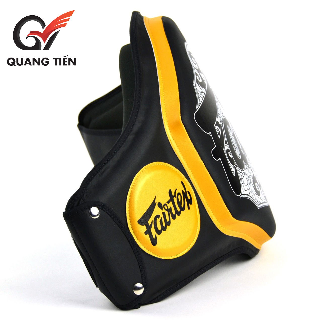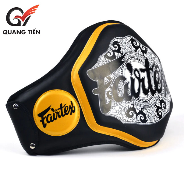 Mặt trong của đệm bụng có lõi xốp 6 lớp, được gia cố bằng khung nhựa nhẹ. Thiết kế này tối đa hóa khả năng hấp thụ sốc cho các cú đánh mạnh mẽ từ các cú đẩy và đầu gối. Hình dáng mảnh mai của đai bụng BPV3 Fairtex đảm bảo vừa khít với bụng. Thiết kế BPV3 giúp tăng khả năng bảo vệ vùng háng cho người giữ đai.