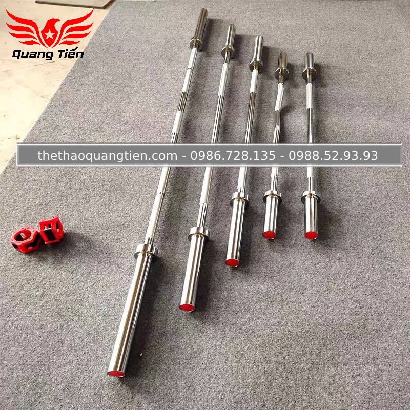 - Thiết kế 2 đầu phi 50 bằng inox có kẹp khóa tạ, phần tay cầm thép đặc mạ niken phi 28.
