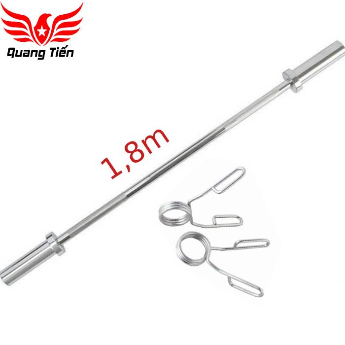 - Đòn gánh tạ 1,8m lắp tạ phi 50 dùng cho phòng Gym được đúc đặc từ chất liệu thép, mạ inox chống rỉ sét + bong tróc và có kẹp giữ tạ ở hai đầu.