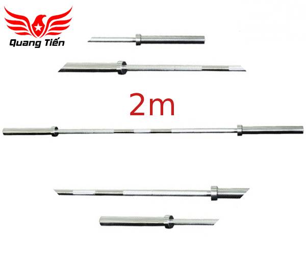 - Đòn gánh tạ 2m lắp tạ phi 50 dùng cho phòng Gym được đúc đặc từ chất liệu thép, mạ inox chống rỉ sét + bong tróc và có kẹp giữ tạ ở hai đầu.