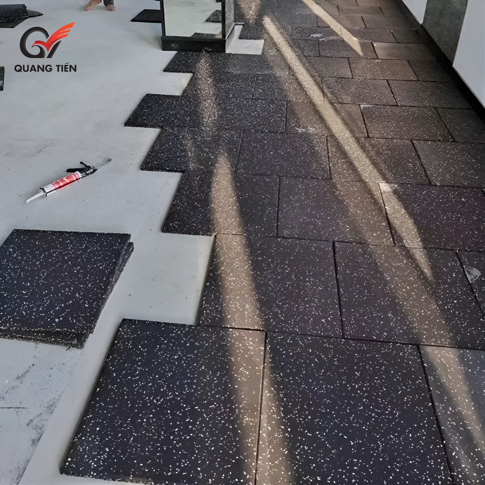 Gạch cao su có độ dày từ 25mm trở lên có đặc tính cách âm tốt giữa các tầng và tính đàn hồi tự nhiên của gạch cao su, sản phẩm thích hợp sử dụng trong các nhà kho, nhà xưởng, sân chơi….nơi máy móc có độ rung cao.