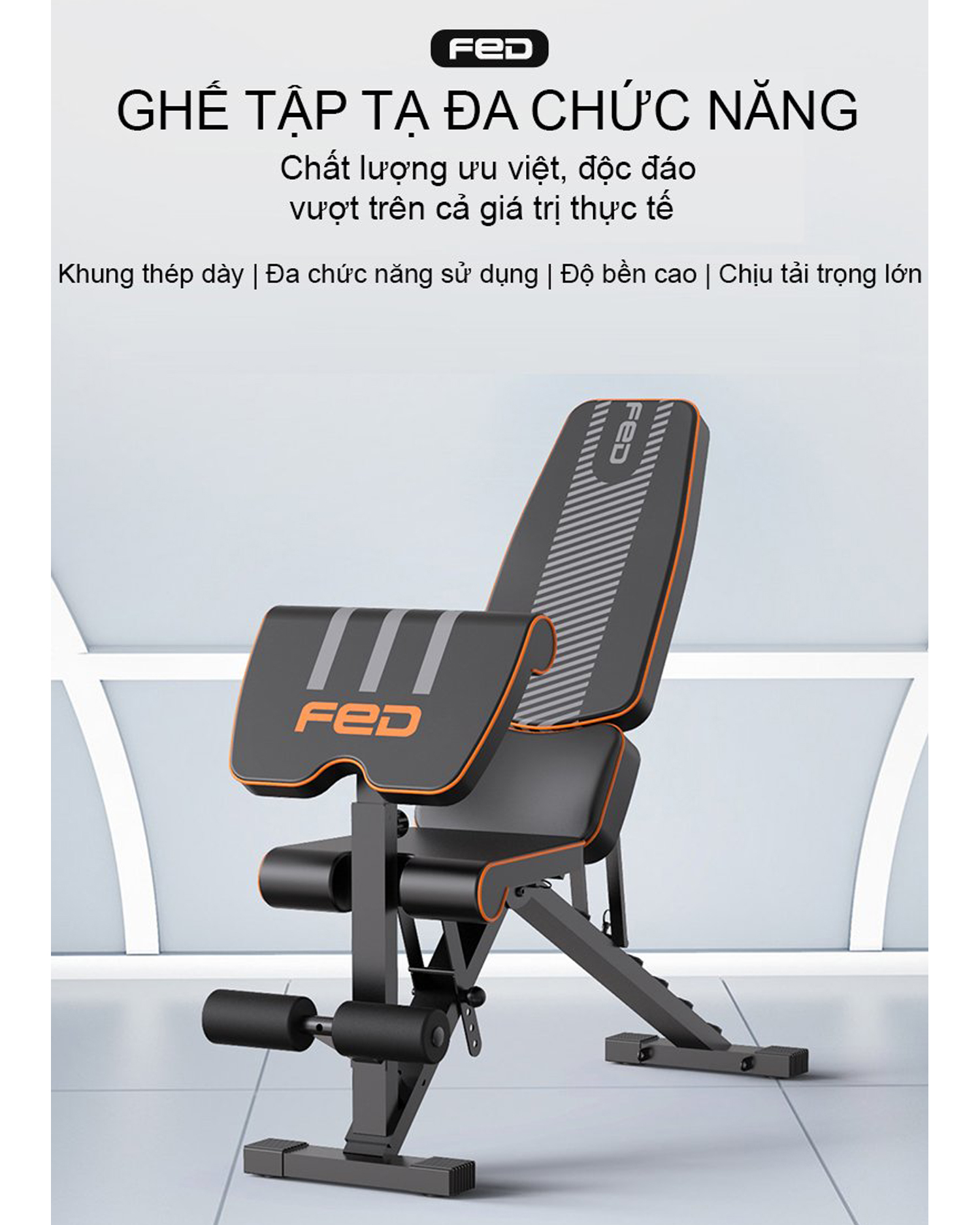 - Việc sử dụng ghế tập tạ đa năng FED – XM0117 còn giúp bạn tập được vùng cơ bụng hiệu quả. Giúp giảm lượng mỡ dư thừa, cho bạn một thân hình cân đối, khỏe mạnh.