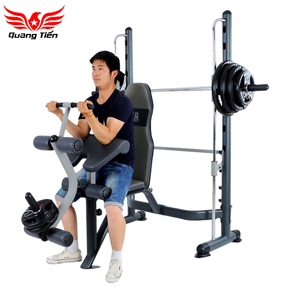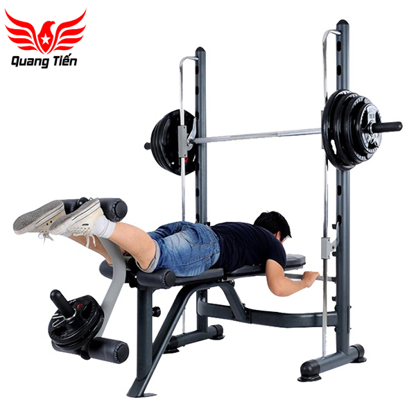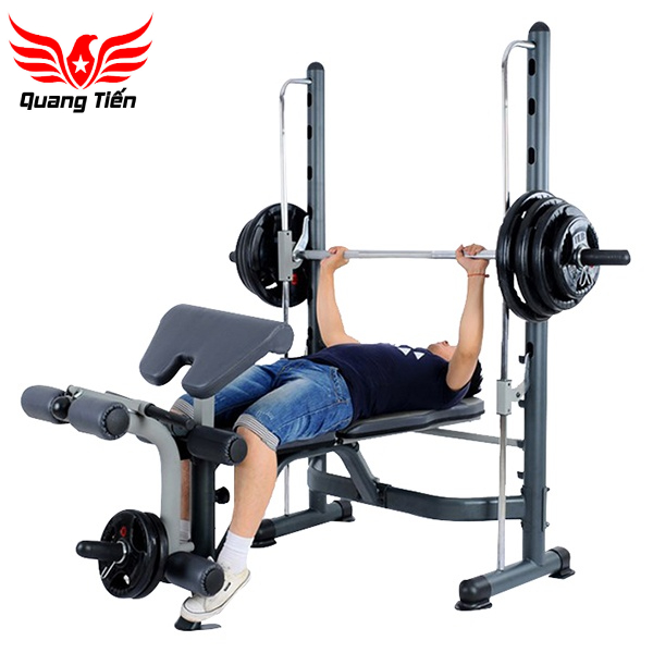 + Ghế tập Gym có thanh đòn tạ đi kèm với chức năng đẩy ngực và gánh tạ. Thanh tạ đòn tích hợp móc an toàn và dễ dàng móc cố định vào các điểm trên khung chính của ghế tập.
