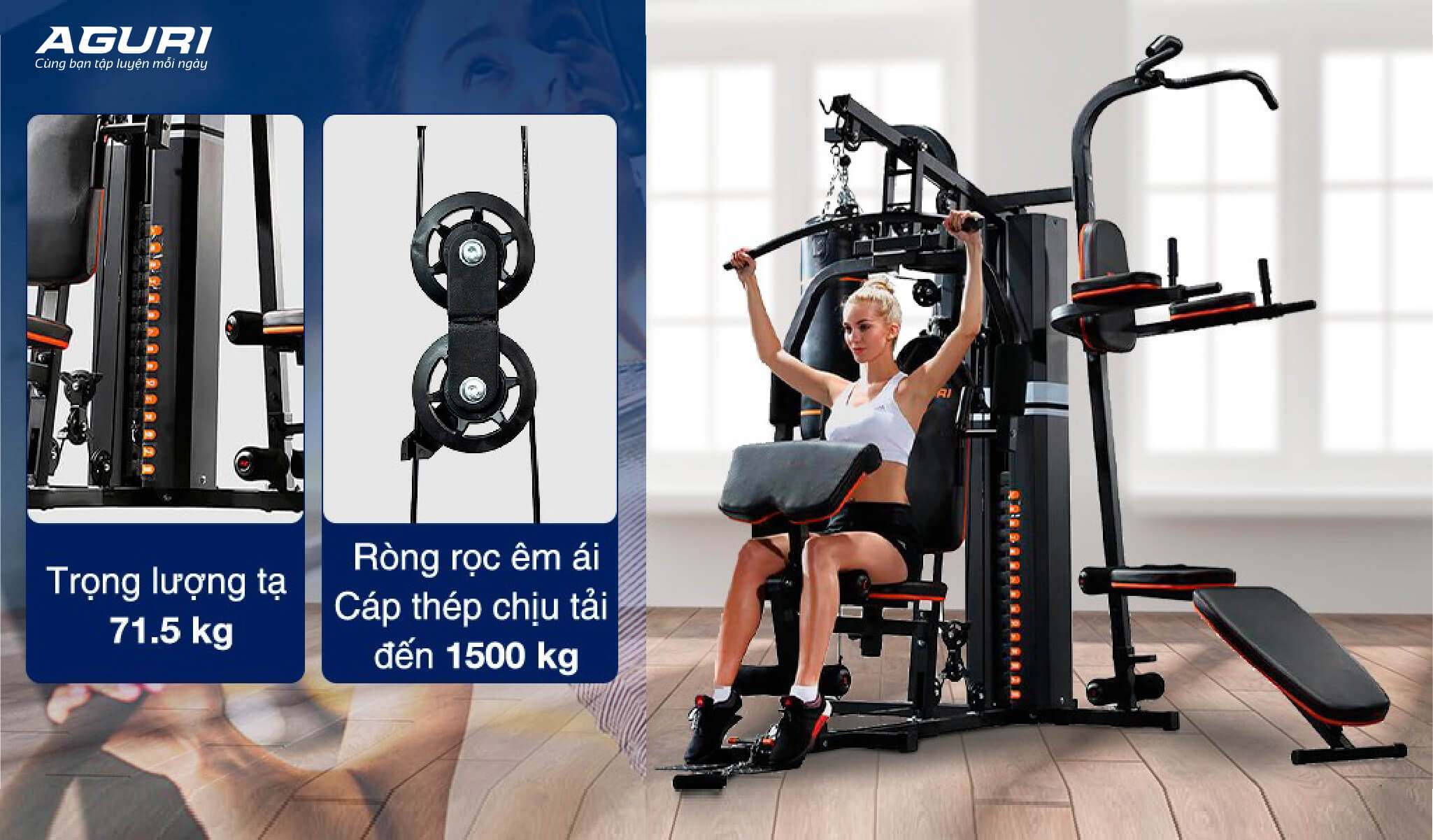 Bảo hành dành riêng cho giàn tạ đa năng: Đối với các thiết bị giàn tạ đa năng, AGURI cung cấp bảo hành lên đến 3 năm cho khung máy chính. Các chi tiết khác của máy sẽ được bảo hành trong khoảng 1 năm, tùy thuộc vào từng trường hợp.