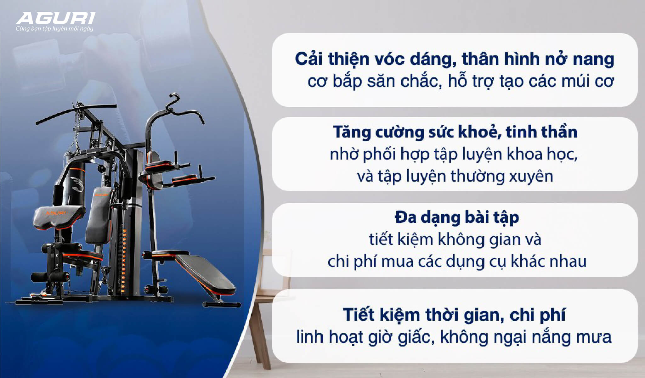 5. Giàn tạ đa năng AGG-401 và lợi ích khi tập luyện đều đặn, kiện trì