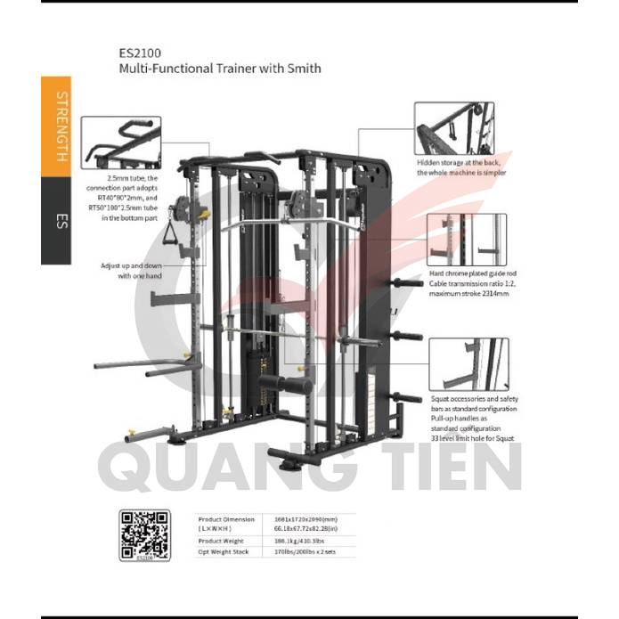- Giàn tập tạ đa năng ES2100 thuộc dòng implus, được thiết kế chuyên dụng cho các phòng tập gym. Sản phẩm hỗ trợ nhiều tính năng, vận hành êm ái, và kết hợp cùng nhiều phụ kiện đi kèm khác.