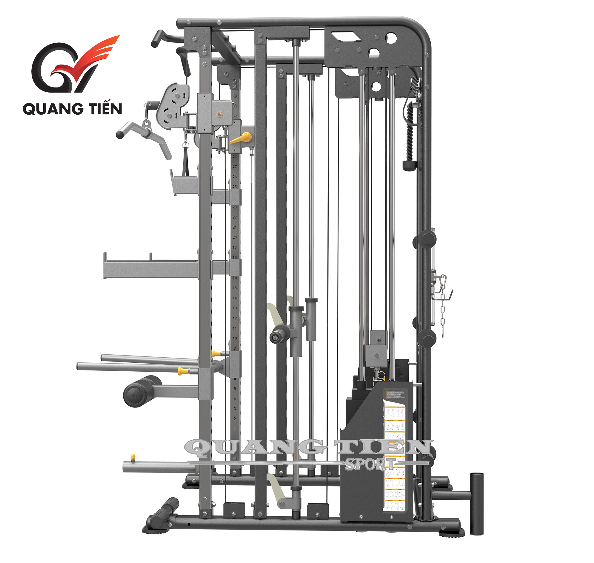 - Có thể điều chỉnh độ cao của ròng rọc với nhiều vị trí khác nhau, từ trên xuống dưới tùy thuộc vào mỗi bài tập.