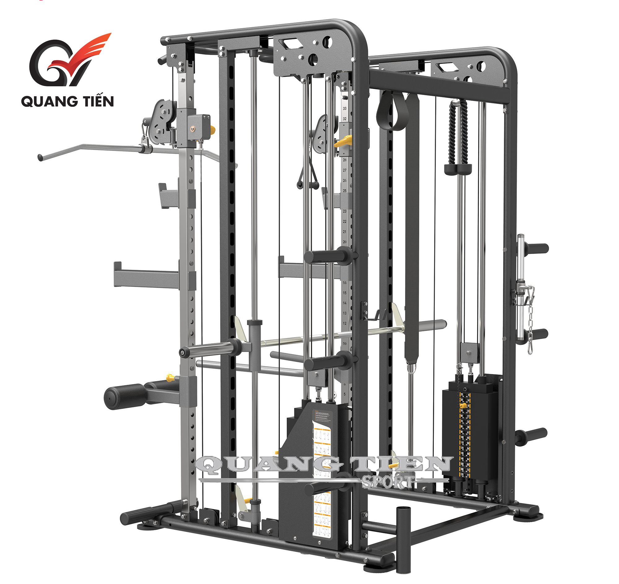 - Ngoài ra giàn tạ còn được thiết kế thêm xà đơn hỗ trợ các bài tập lưng xô.