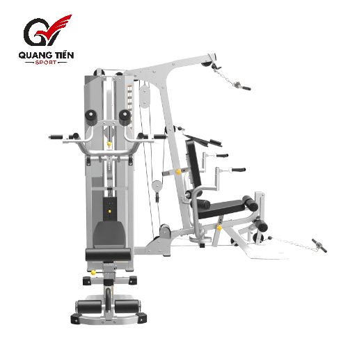 - Phần ghế tập, tựa lưng và tay cầm của giàn tập được đệm bọc lớp cao su êm ái, có chức năng điều chỉnh vị trí, tạo cảm giác thoải mái và tiện lợi cho người sử dụng.