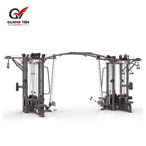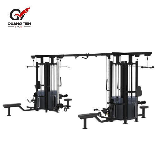 - Với dàn 8 hướng, khách hàng có thể tập nhiều bài tập với ròng rọc, kéo xô, kéo cáp… Cột cáp có thể điều chỉnh để tập luyện tác động toàn diện các nhóm cơ như tay trước, tay sau, ngực, lưng, xô vai…..