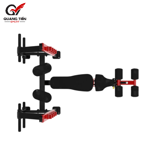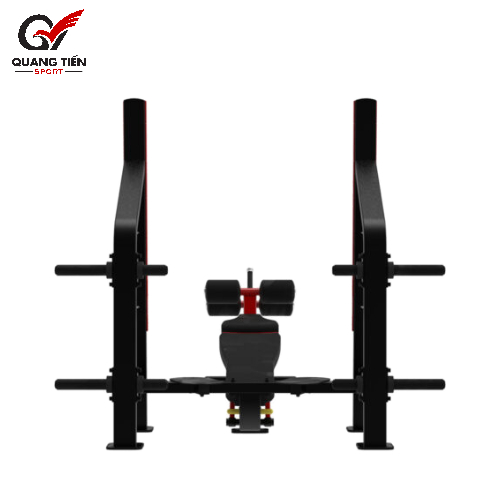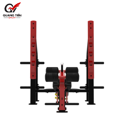Vị trí ngách để tạ đòn trên thân ghế được thiết kế tinh tế, được bọc lớp nhựa cao cấp để tránh ma sát với thanh đòn và sơn màu đỏ nổi bật. Máy tập cũng được bố trí 4 thanh đòn giữ tạ phụ chắc chắn 2 bên, phục vụ quá trình lưu trữ tạ đĩa cao su an toàn trước và sau khi sử dụng.