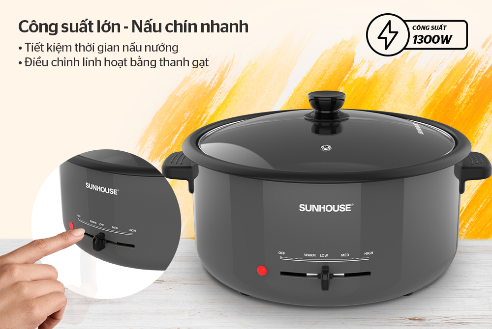Nồi có nhiều mức nhiệt phù hợp với chức năng và mục đích nấu nướng khác nhau, được điều chỉnh bằng thanh gạt đơn giản.