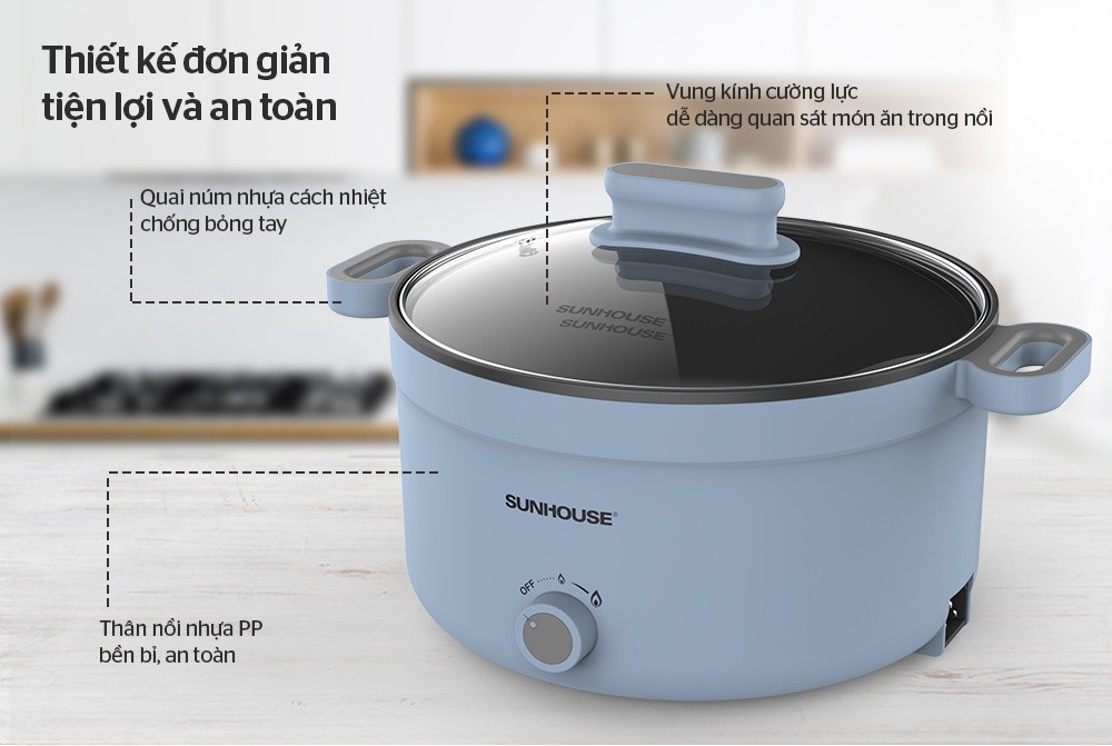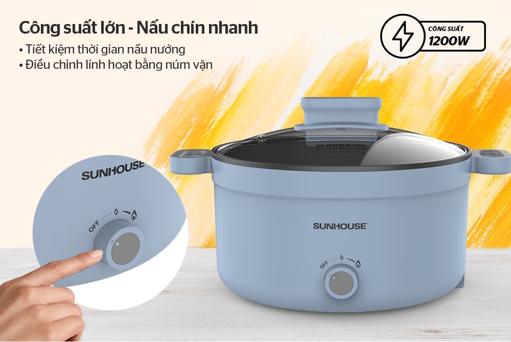 Ăn lẩu tại gia ngày càng trở nên quen thuộc với các gia đình Việt. Không những đổi vị bữa cơm gia đình, quây quần bên nồi lẩu còn là khoảng thời gian vàng để các thành viên thêm gắn kết. Thấu hiểu được nhu cầu đó, SUNHOUSE cho ra đời Nồi lẩu điện 3.5L SUNHOUSE SHD4528 với thiết kế trang nhã và công suất nấu mạnh mẽ, chế biến được nhiều loại thức ăn khác nhau, sử dụng đơn giản, tiện dụng hơn cho công việc nội trợ.