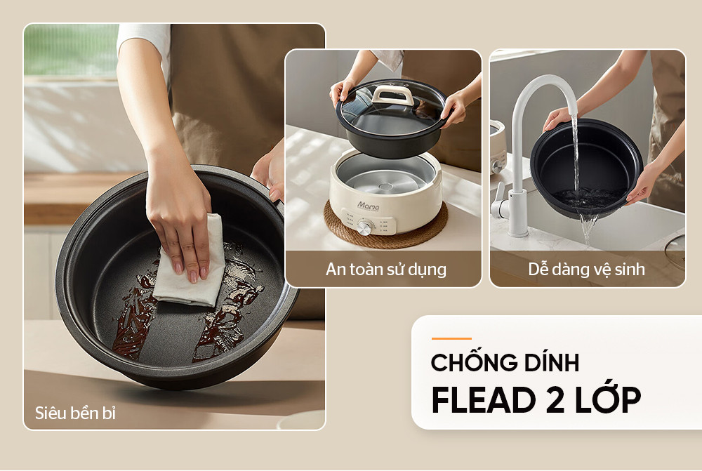 Chống dính Flead 2 lớp, siêu bền bỉ, an toàn và dễ vệ sinh