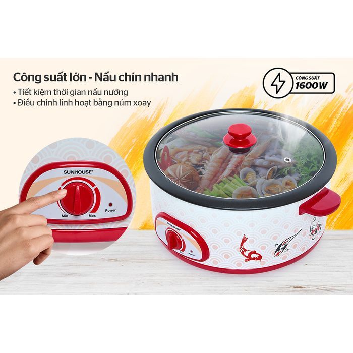 Lẩu điện Sunhouse SH525L hoạt động với công suất lớn, cho khả năng làm nóng nhanh