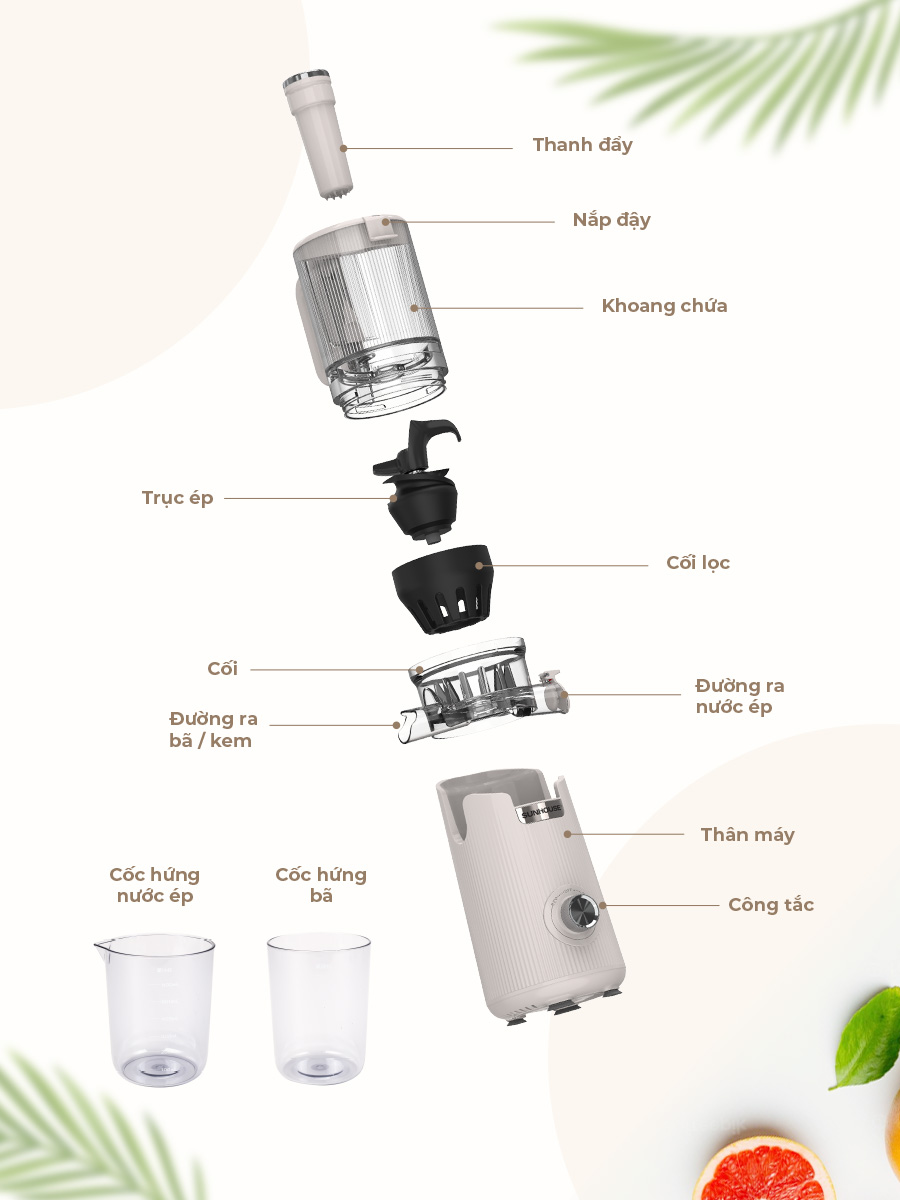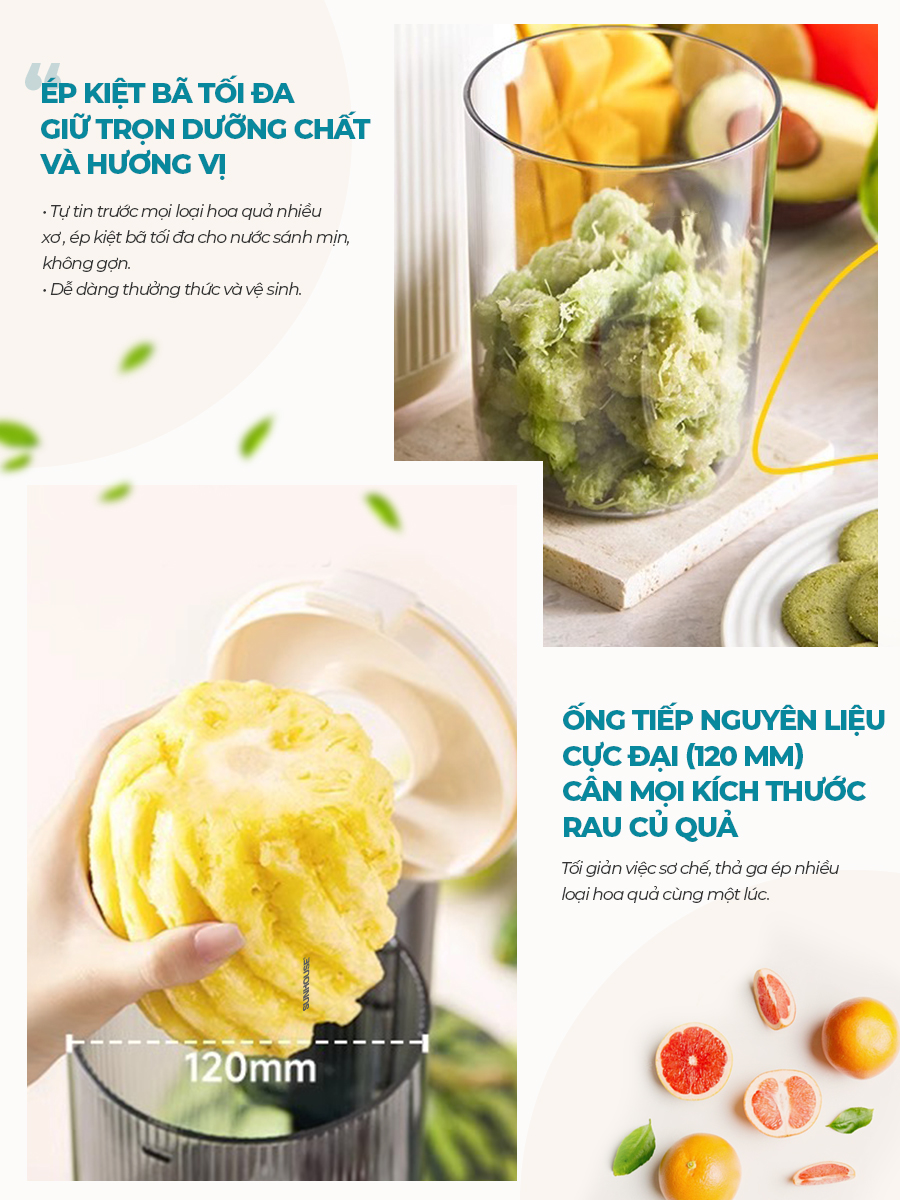 Công nghệ ép chậm không sinh nhiệt (52 vòng/phút) giữ trọn dưỡng chất
