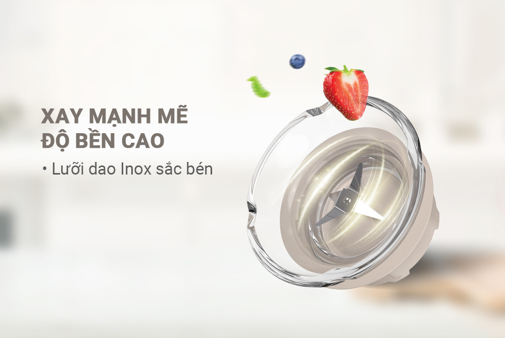 Lưỡi dao Inox sắc bén, xay đa dạng các loại thực phẩm.