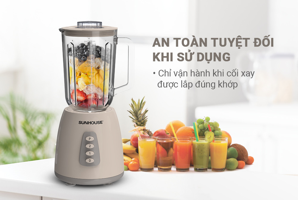 Máy xay sinh tố đa năng Sunhouse SHD5331 chỉ vận hành khi cối xay được lắp đúng khớp, đảm bảo an toàn tuyệt đối cho người sử dụng, đặc biệt là khi có trẻ nhỏ trong gia đình.
