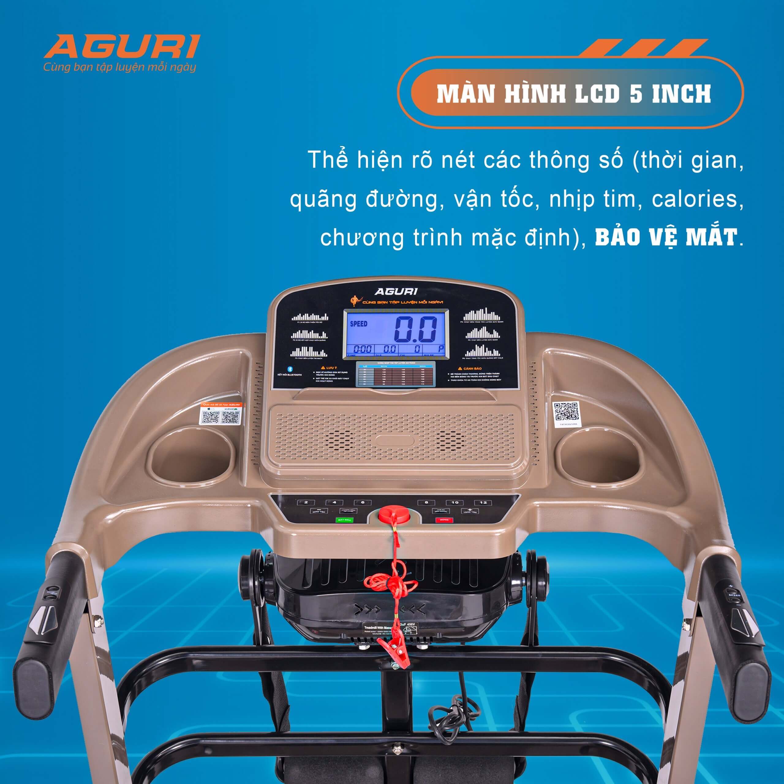 1. Máy chạy bộ AGT-122L sở hữu màn hình LCD 5 inch sống động, hiển thị thông tin rõ ràng, bảo vệ mắt