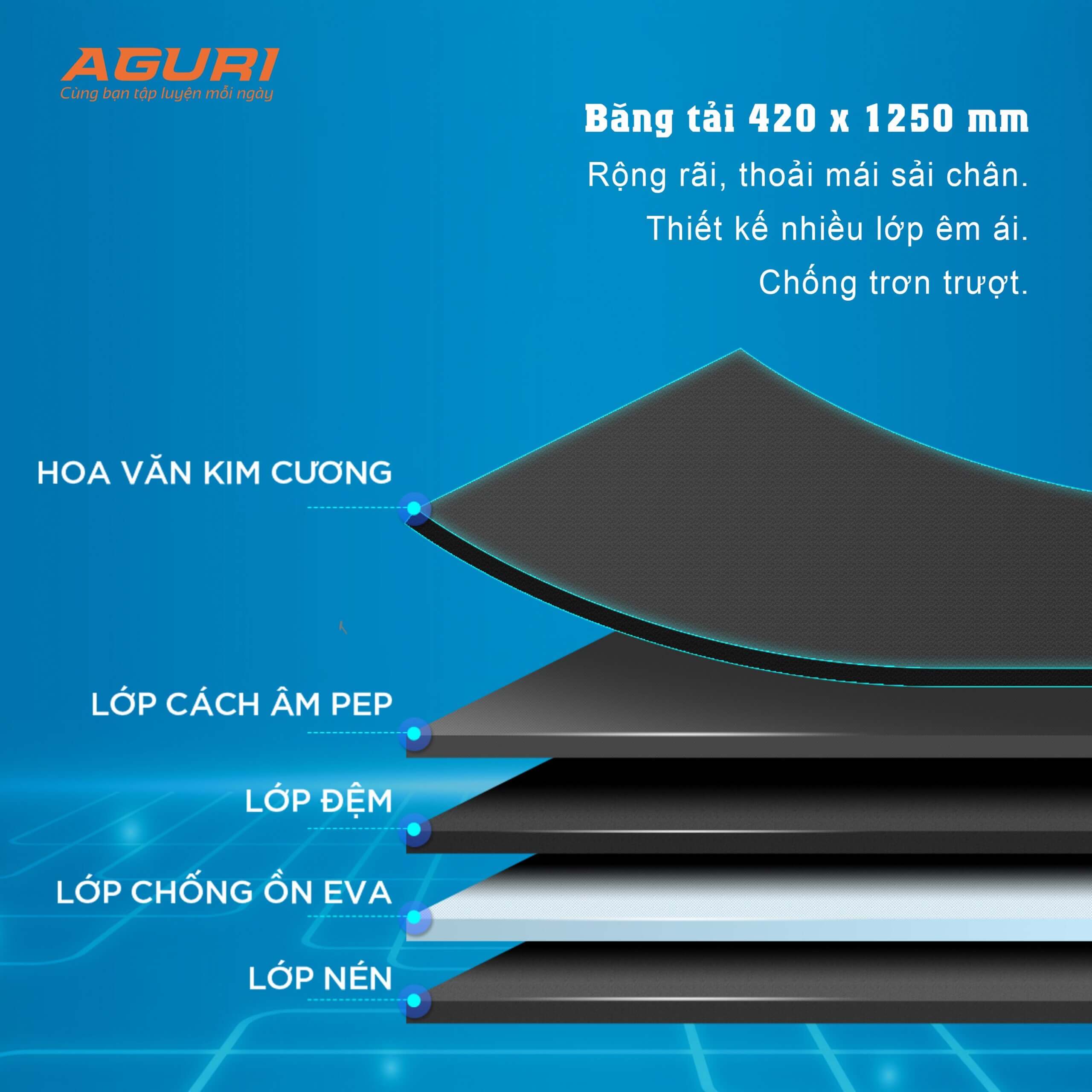5. Máy chạy bộ AGT-122L trang bị băng tải nhiều lớp, chống trơn trượt, an toàn cho người sử dụng