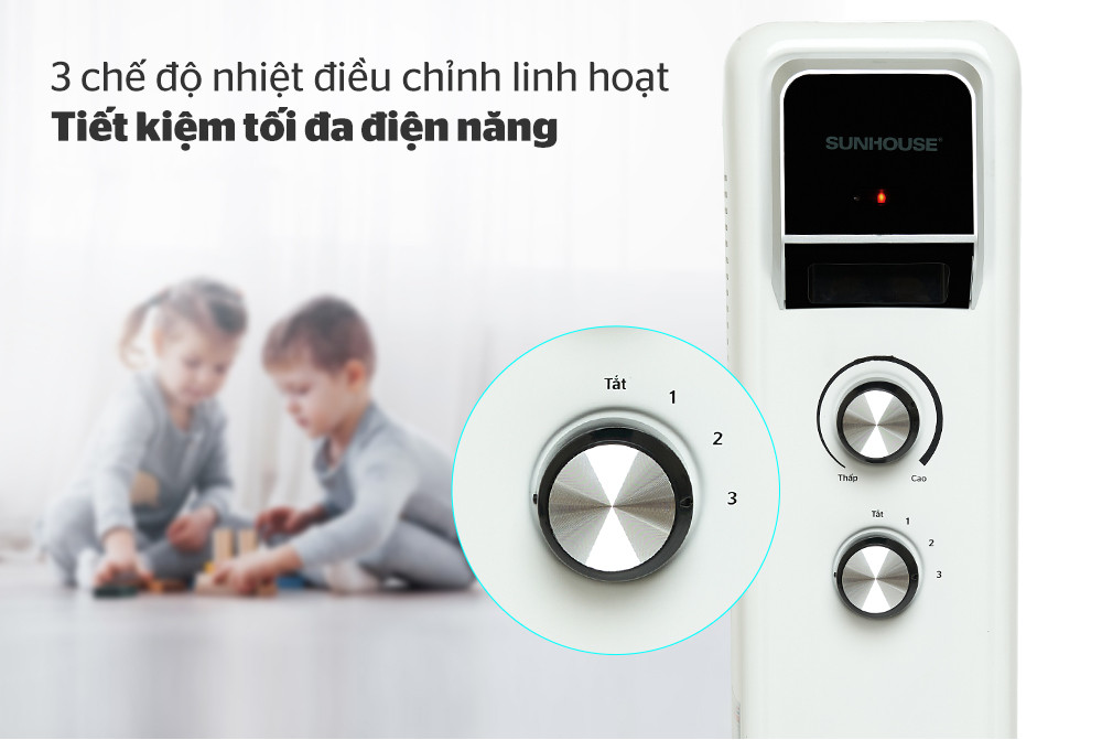 Với cấu tạo 13 lá phát nhiệt lớn và công suất 2400W, sưởi dầu 13 lá SUNHOUSE SHD7084 giúp làm nóng nhanh chóng, nhiệt độ tỏa đều khắp gian phòng. Các mức nhiệt độ được điều chỉnh bằng núm xoay nên rất dễ dàng thao tác.