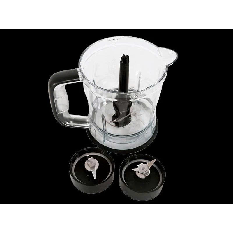 Sản phẩm có 02 cối: cối lớn kèm tay cầm tiện lợi để xay thịt, cối nhỏ để xay thực phẩm khô.