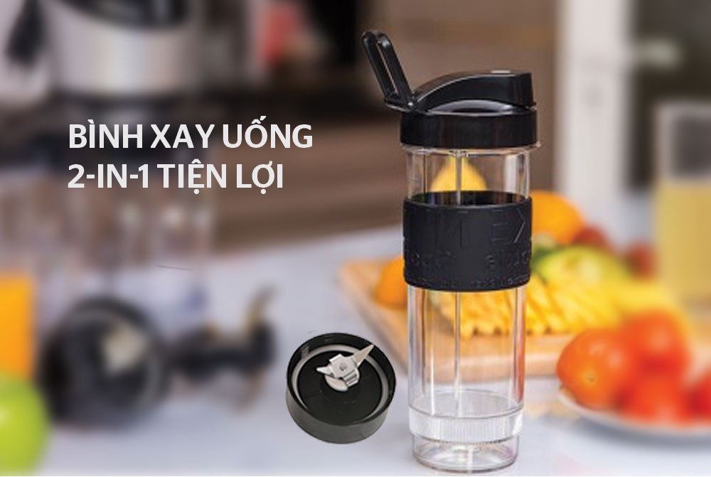 Cối nhựa PC siêu bền, không chứa BPA - Bình xay uống 2in1 tiện lợi
