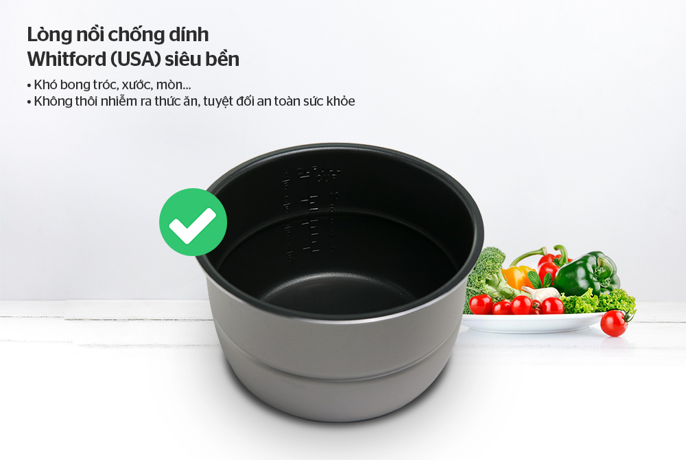 Chất liệu lòng nồi: Hợp kim nhôm phủ chống dính Whitford (USA)